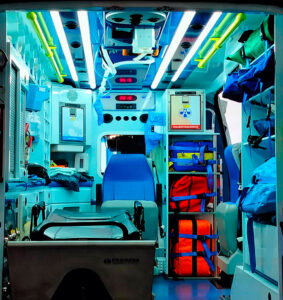 Cuenta con equipamiento electromédico y todo el material necesario para el soporte avanzado de constantes vitales.